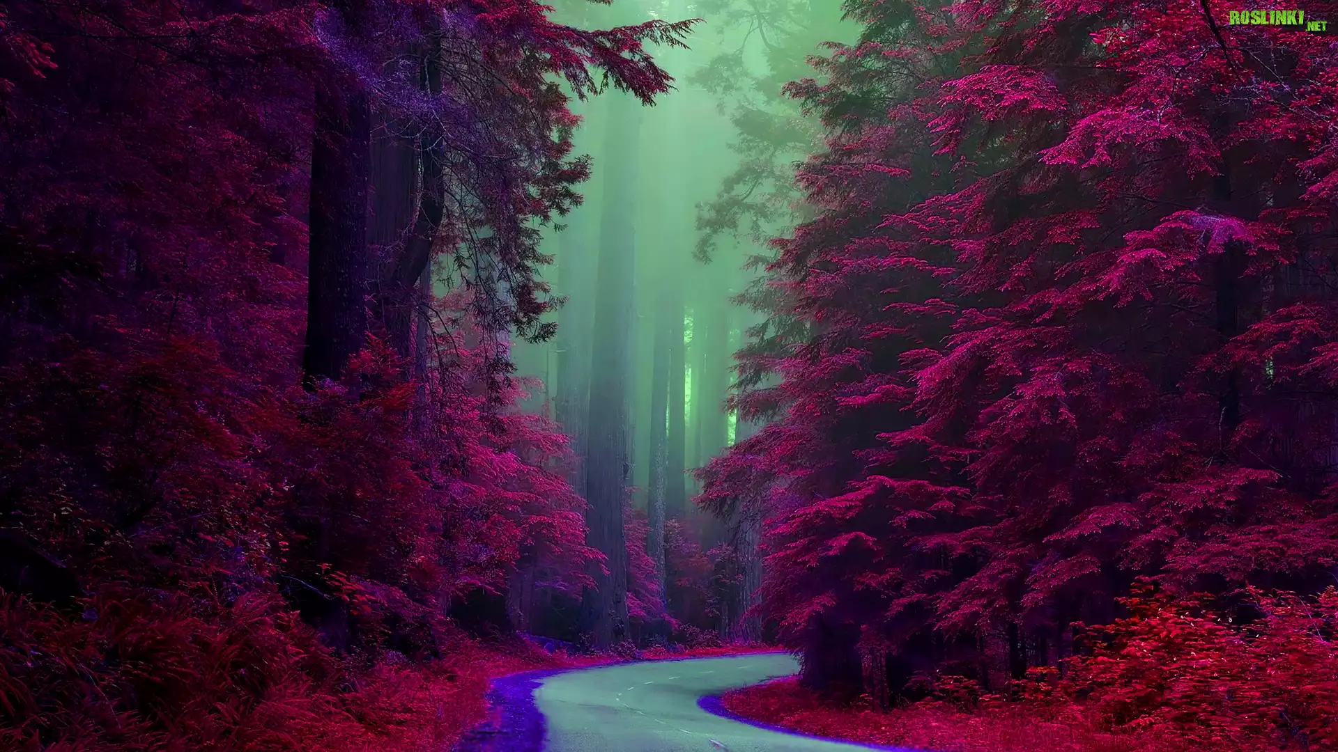 Rośliny: Droga, Drzewa, Jesień, Las