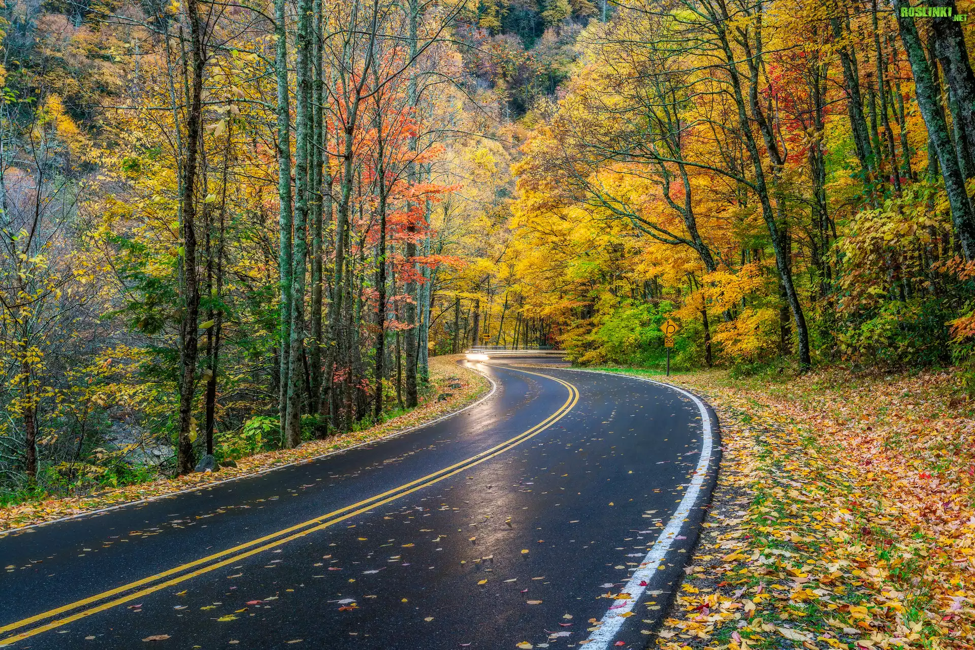 Rośliny: Droga, Drzewa, Jesień, Liście