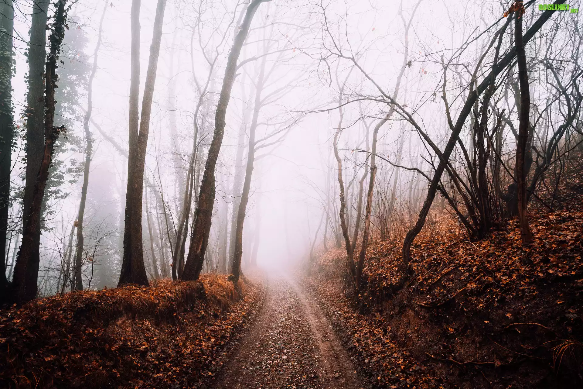 Rośliny: Jesień, Droga, Drzewa, Las, Gęsta, Mgła Drzewo