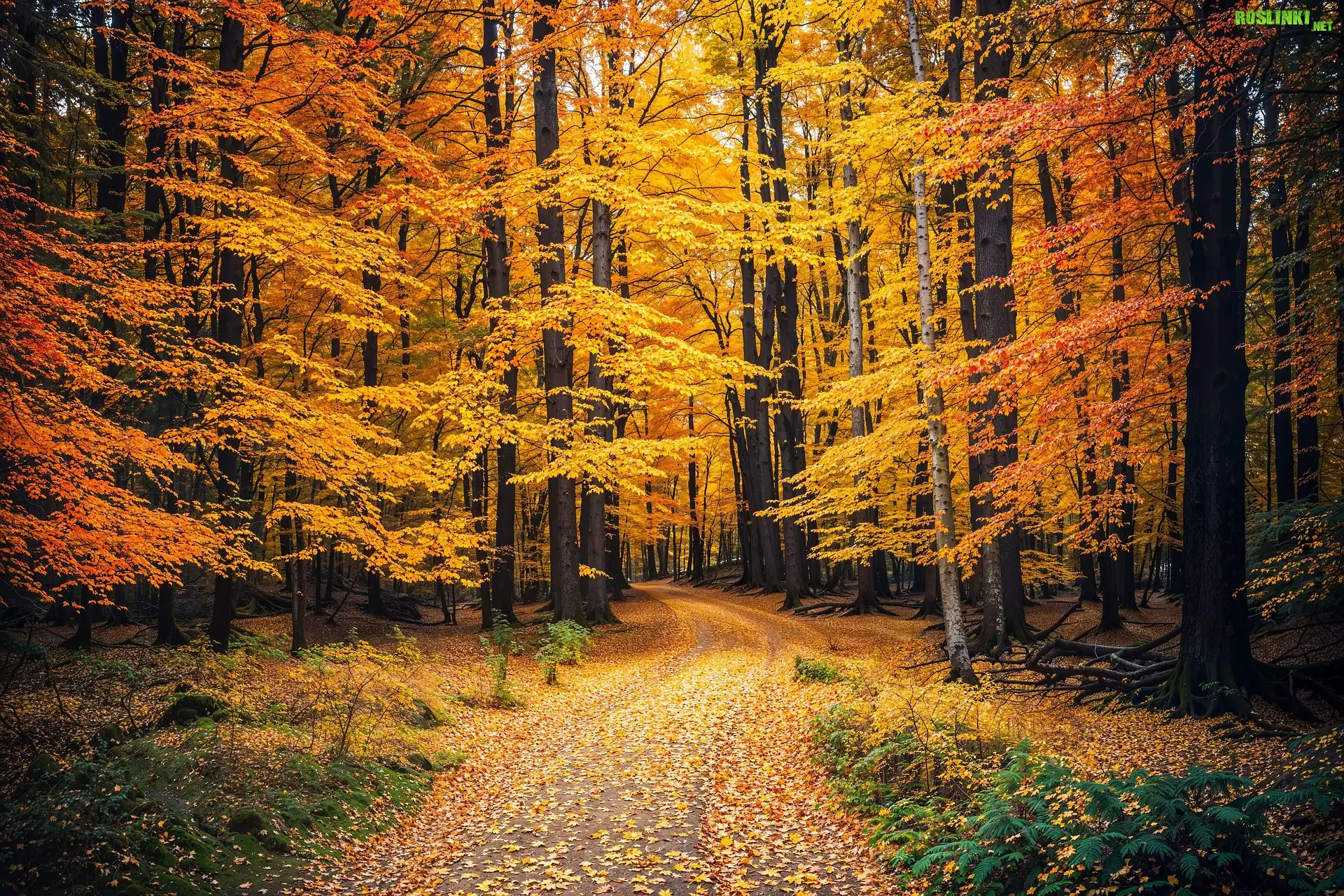 Rośliny: Las, Drzewa, Liście, Droga, Leśna, Jesień