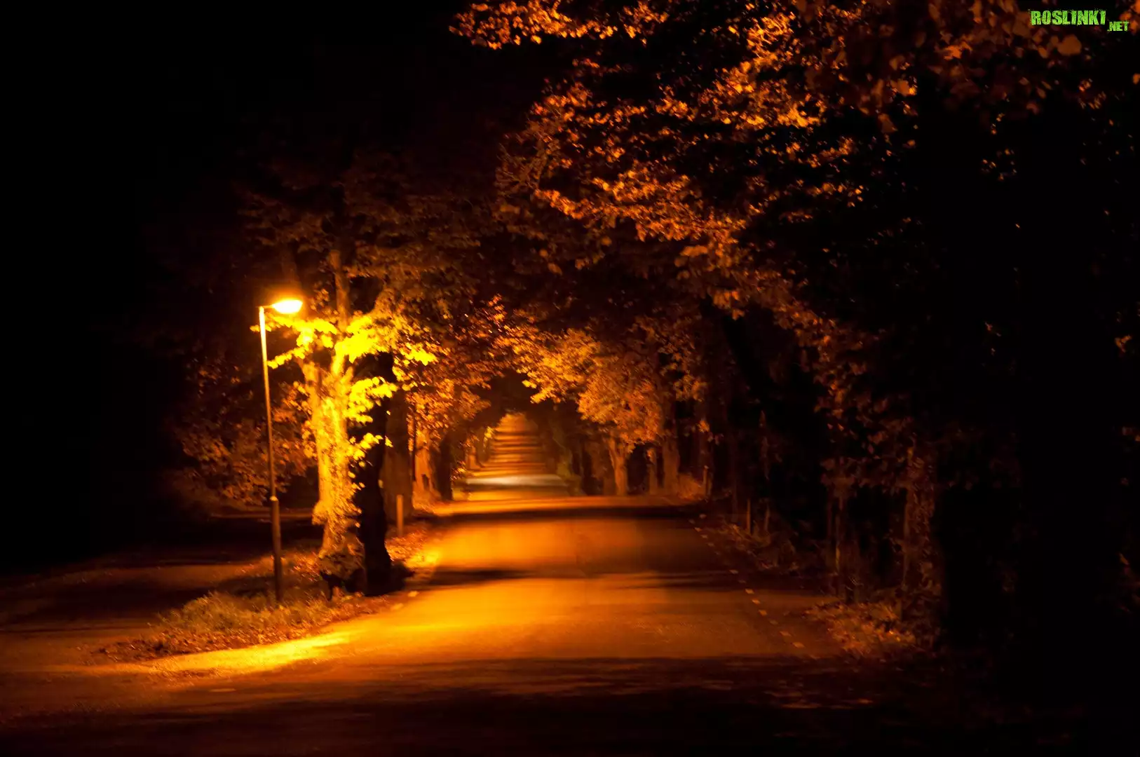 Rośliny: Droga, Drzewa, Lampa, Oświetlenie