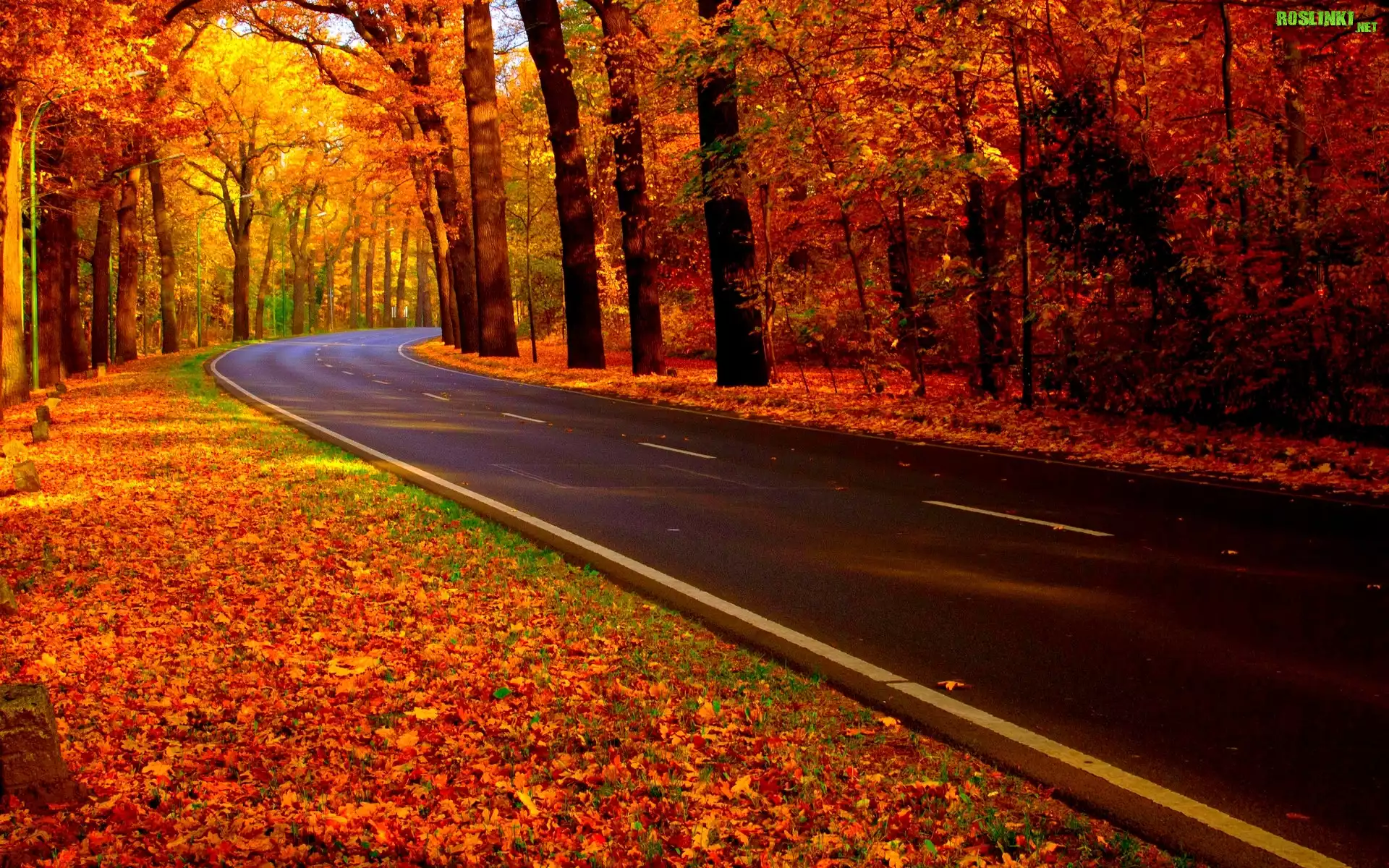 Rośliny: Droga, Las, Kolorowe, Liście, Jesień