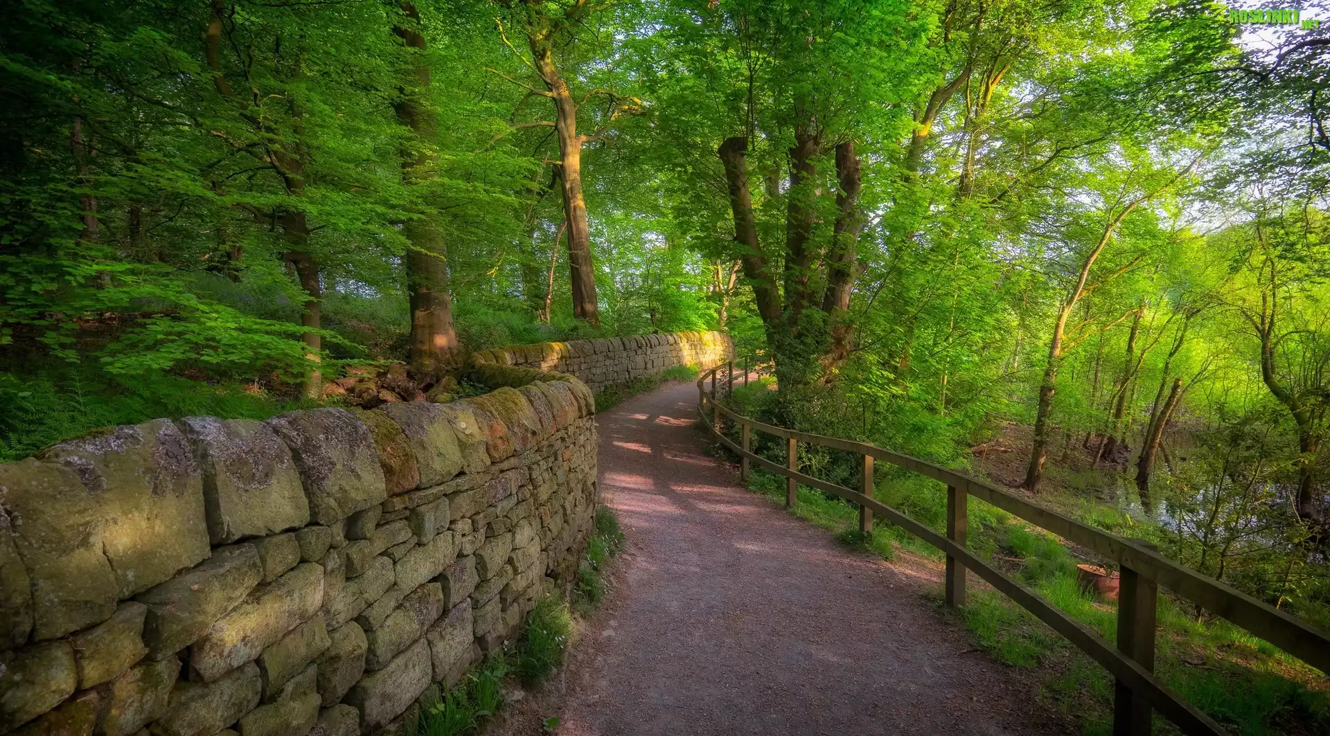Rośliny: Droga, Las, Ogrodzenie, Kamienny, Murek, Drzewa