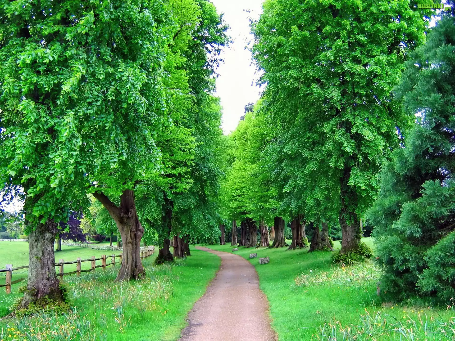 Rośliny: Droga, Zielone, Drzewa, Ogrodzenie, Pole