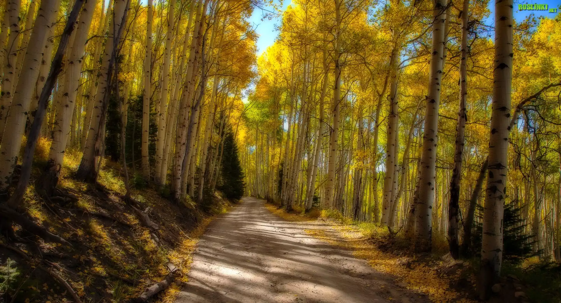 Rośliny: Droga, Drzewa, Topole osikowe, Jesień