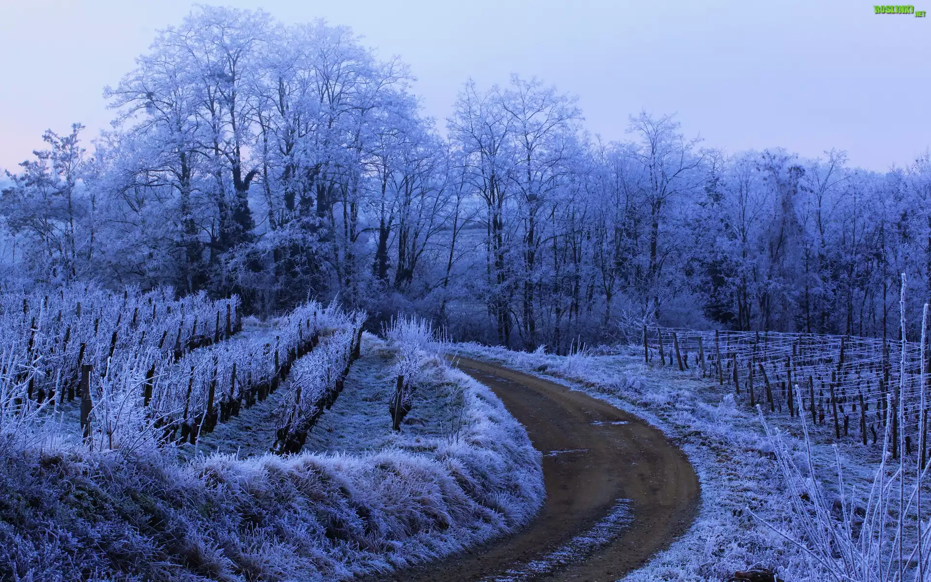 Rośliny: Droga, Drzewa, Pola, Zima