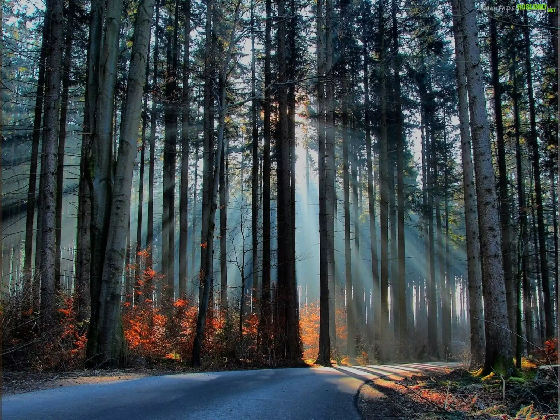 Rośliny: Droga, Drzewa, Przebijające, Światło