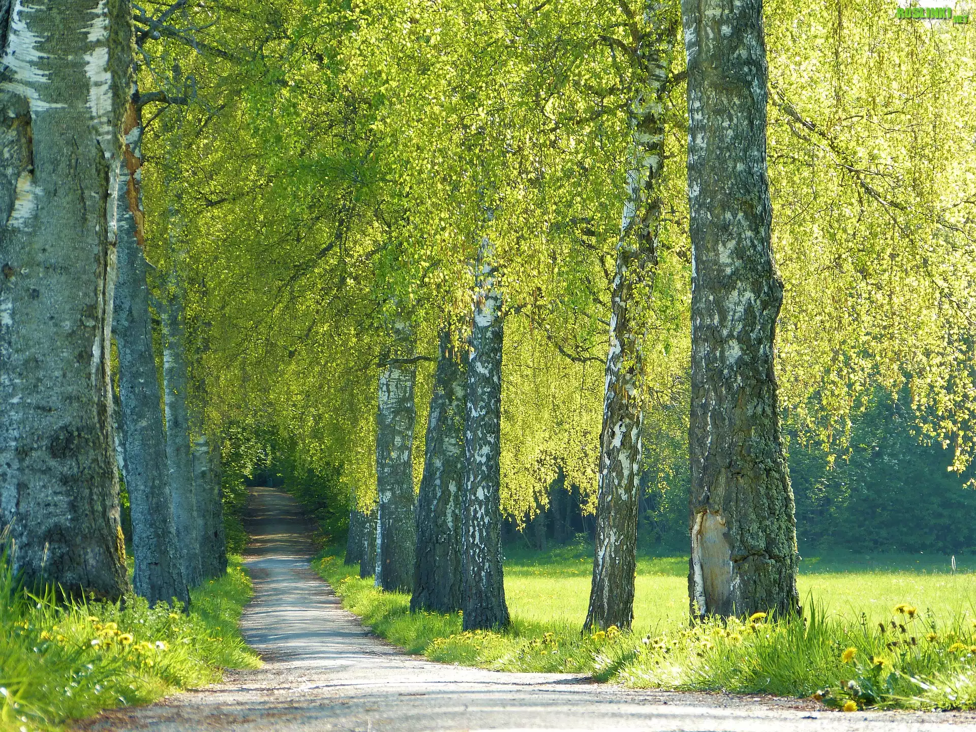 Rośliny: Droga, Drzewa, Brzozy, Słoneczny, Dzień