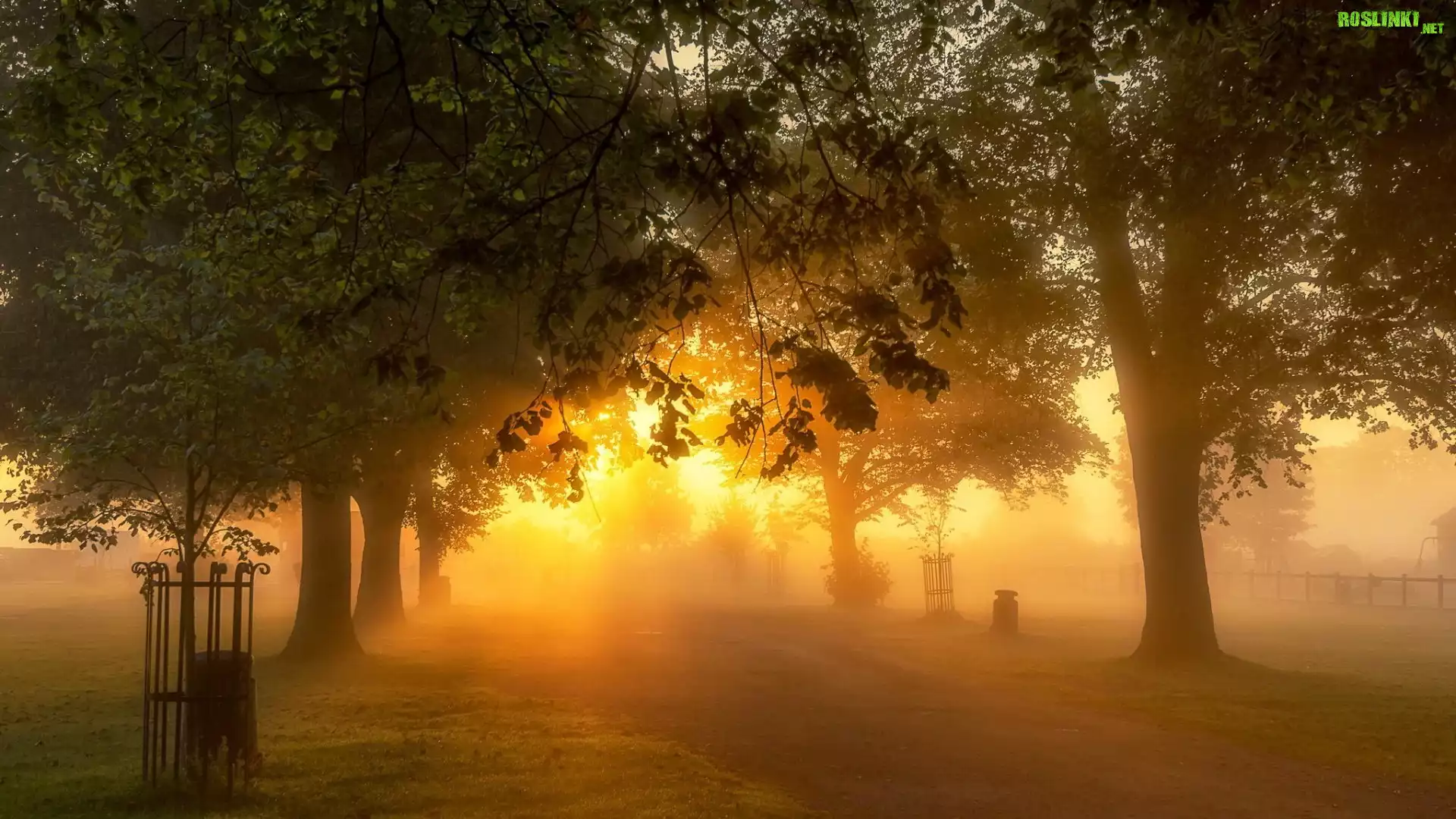 Rośliny: Droga, Drzewa, Mgła, Słoneczny, Blask