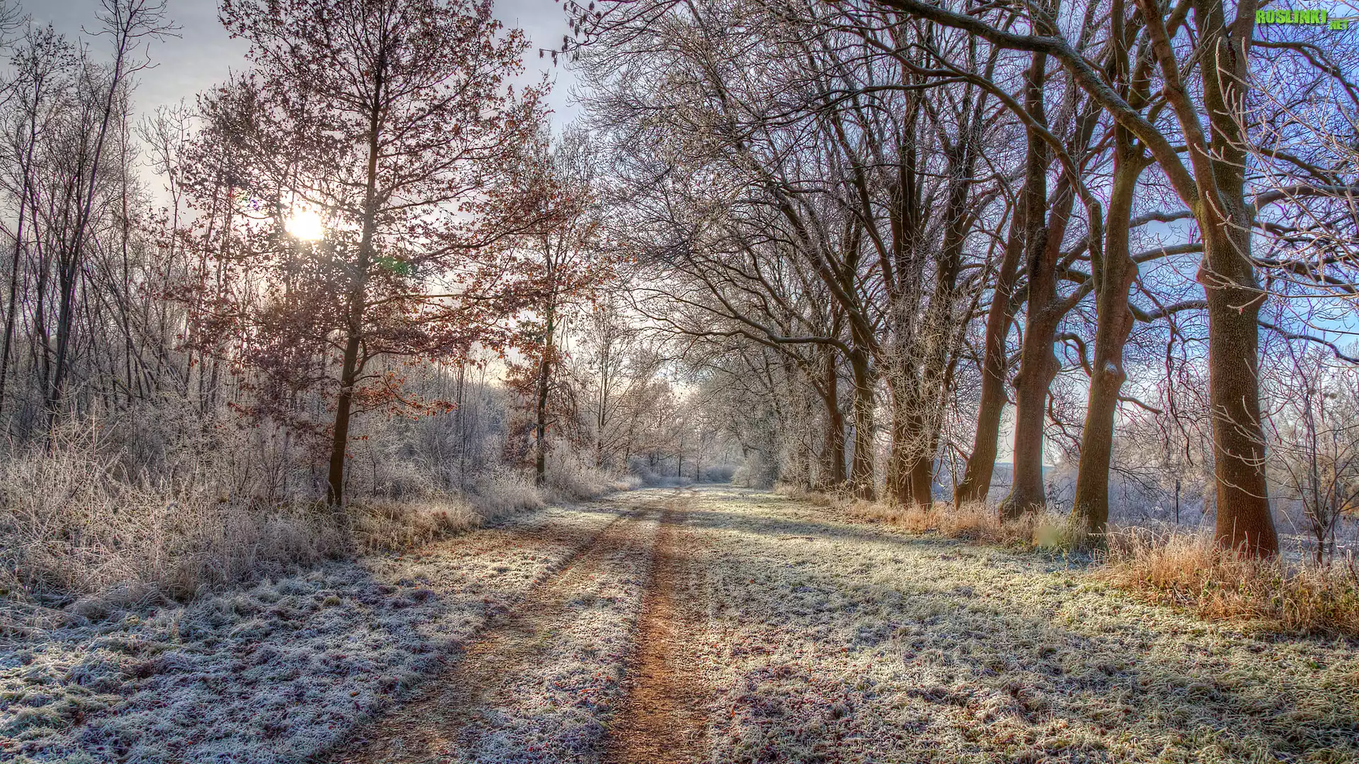 Rośliny: Droga, Drzewa, Szron