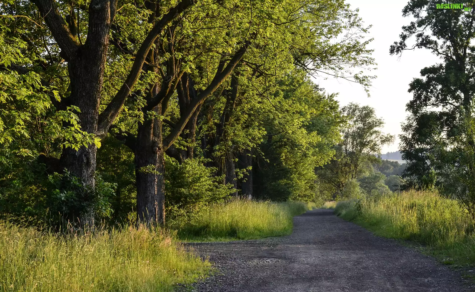 Droga, Drzewa, Trawy