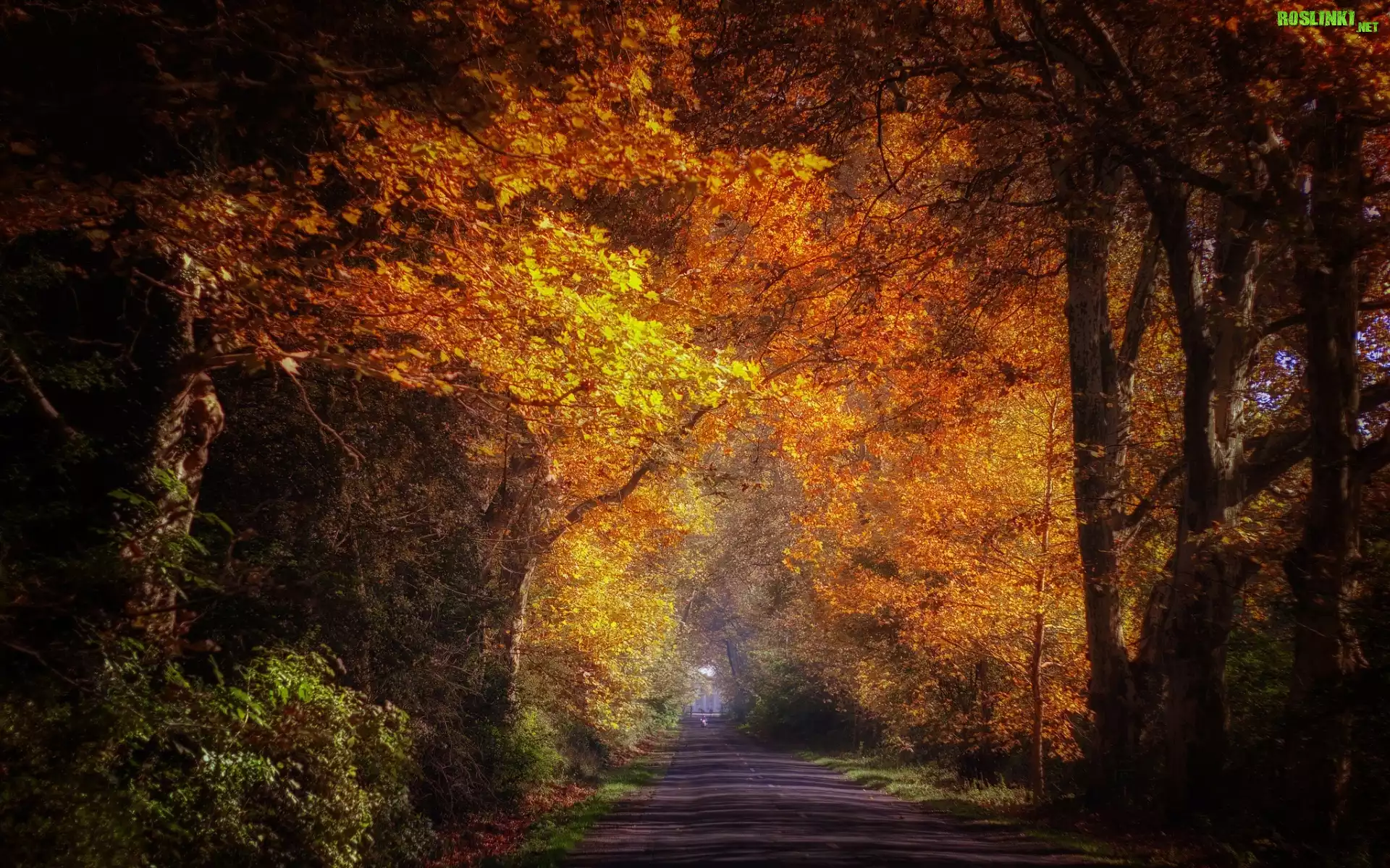 Rośliny: Droga, Drzewa, Przebijające, Światło, Jesień