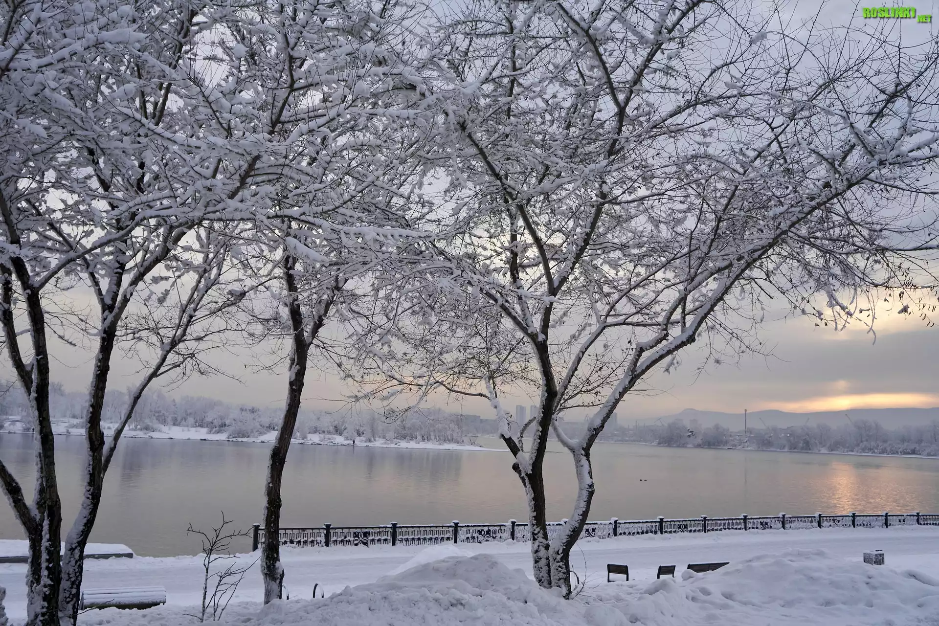 Rośliny: Zima, Rzeka, Drzewa, Droga