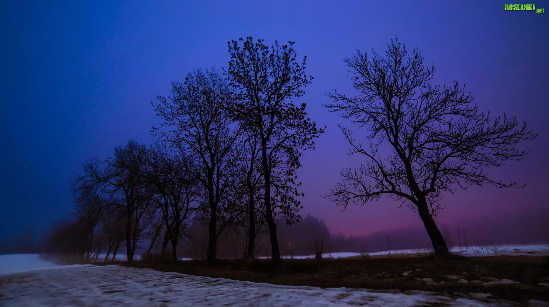 Rośliny: Droga, Drzewa, Pola, Lasy, Zmrok, Zima