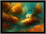 Rośliny: Dom, Dróżka, Drzewa, Grafika AI