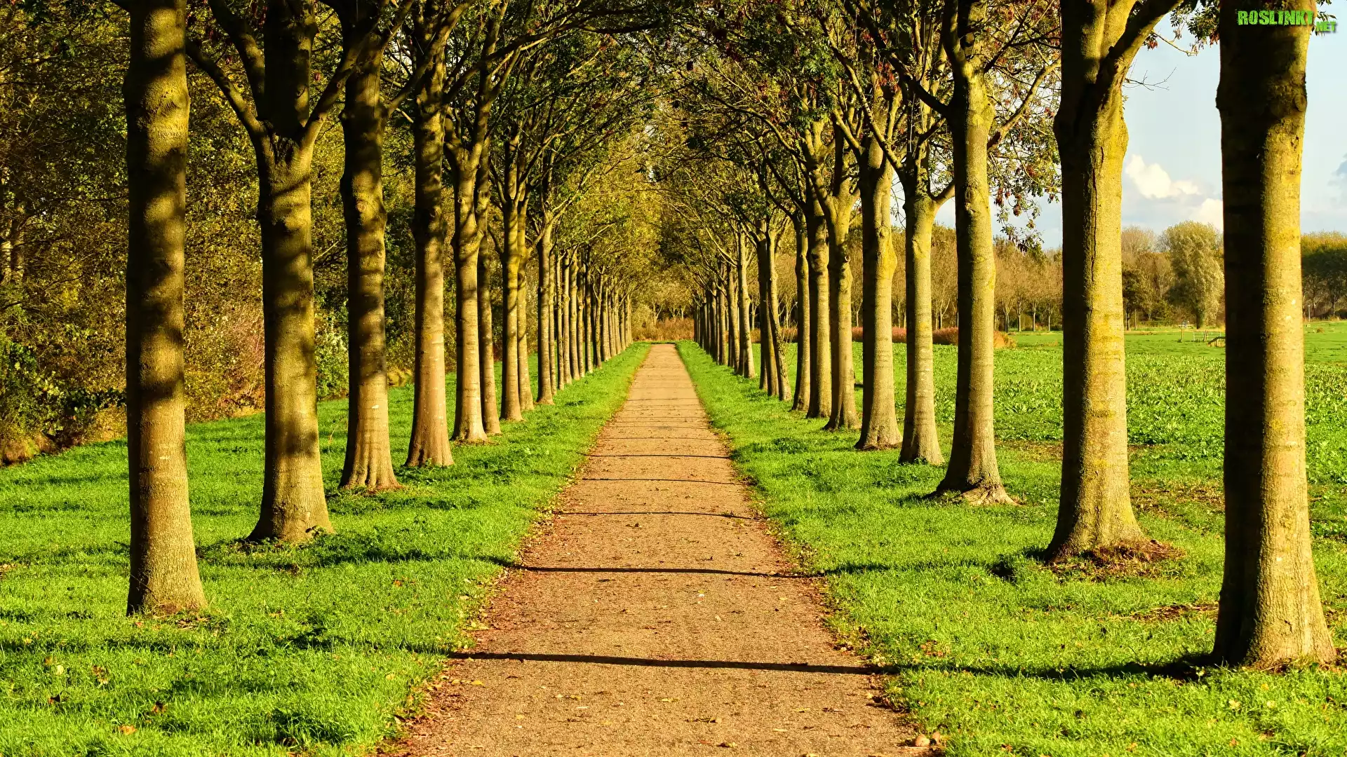 Dróżka, Szpalery, Drzewa, Trawa