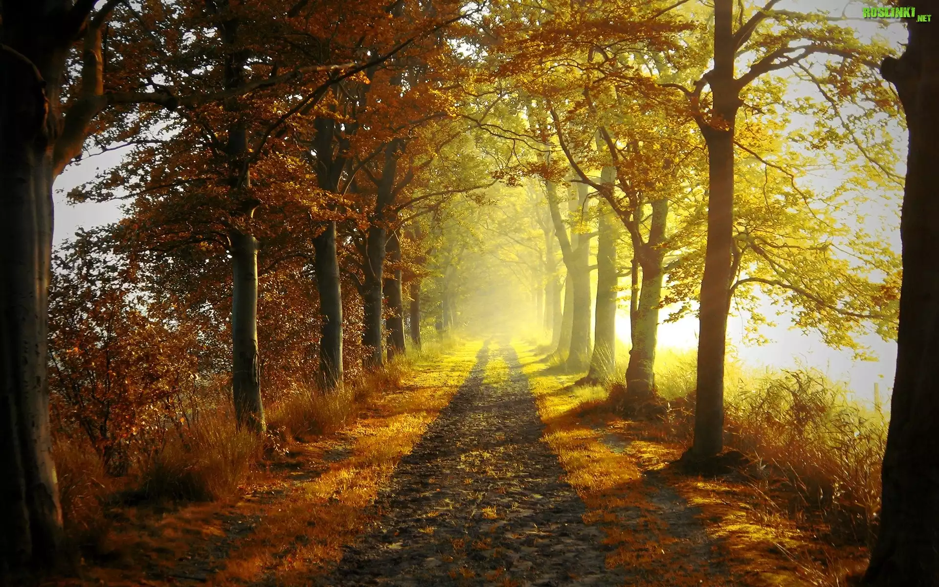 Dróżka, Drzewa, Przebijające, Promienie, Słońca