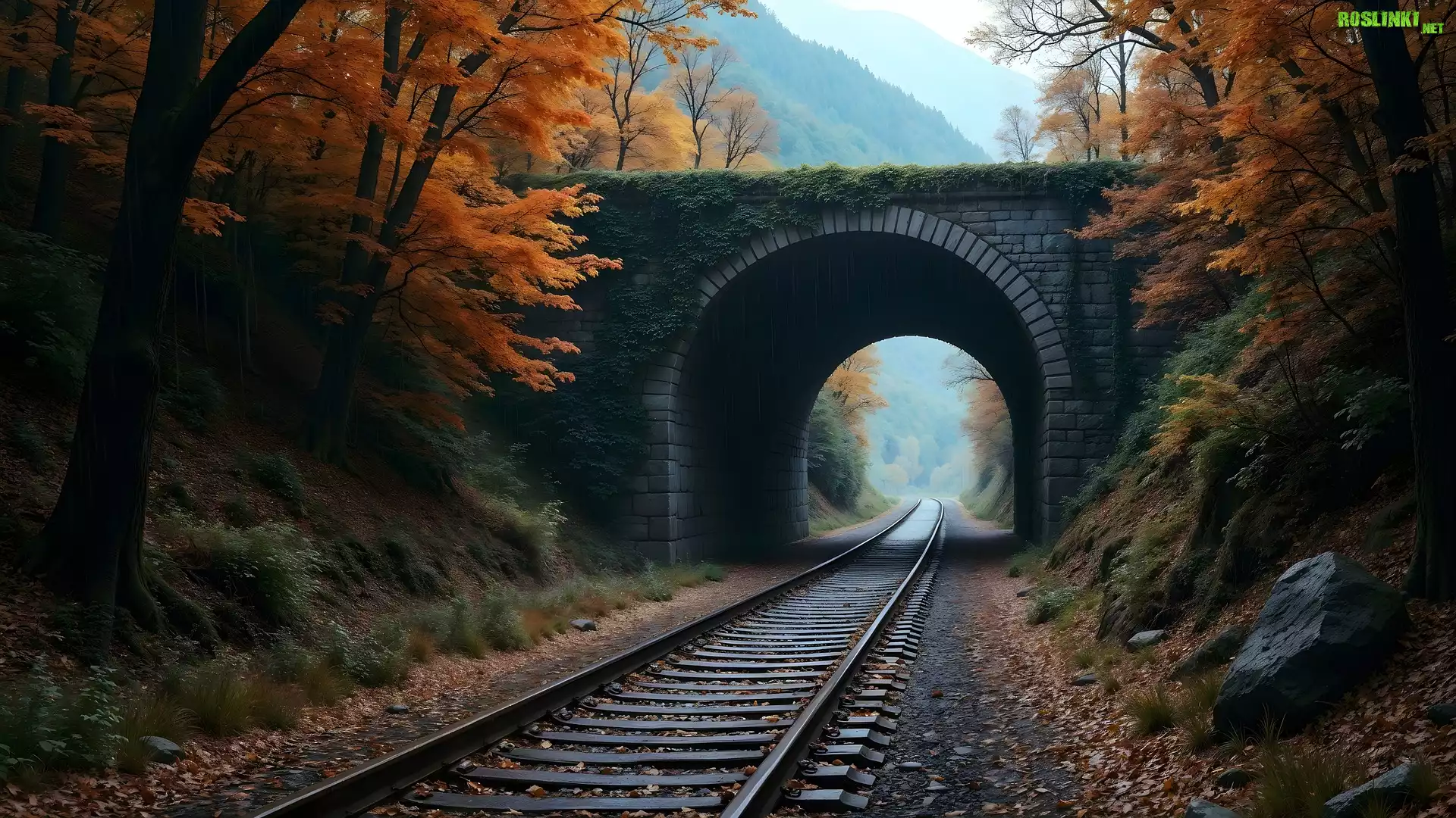 Rośliny: Most, Kamienny, Tory, Drzewa, Jesień, AI