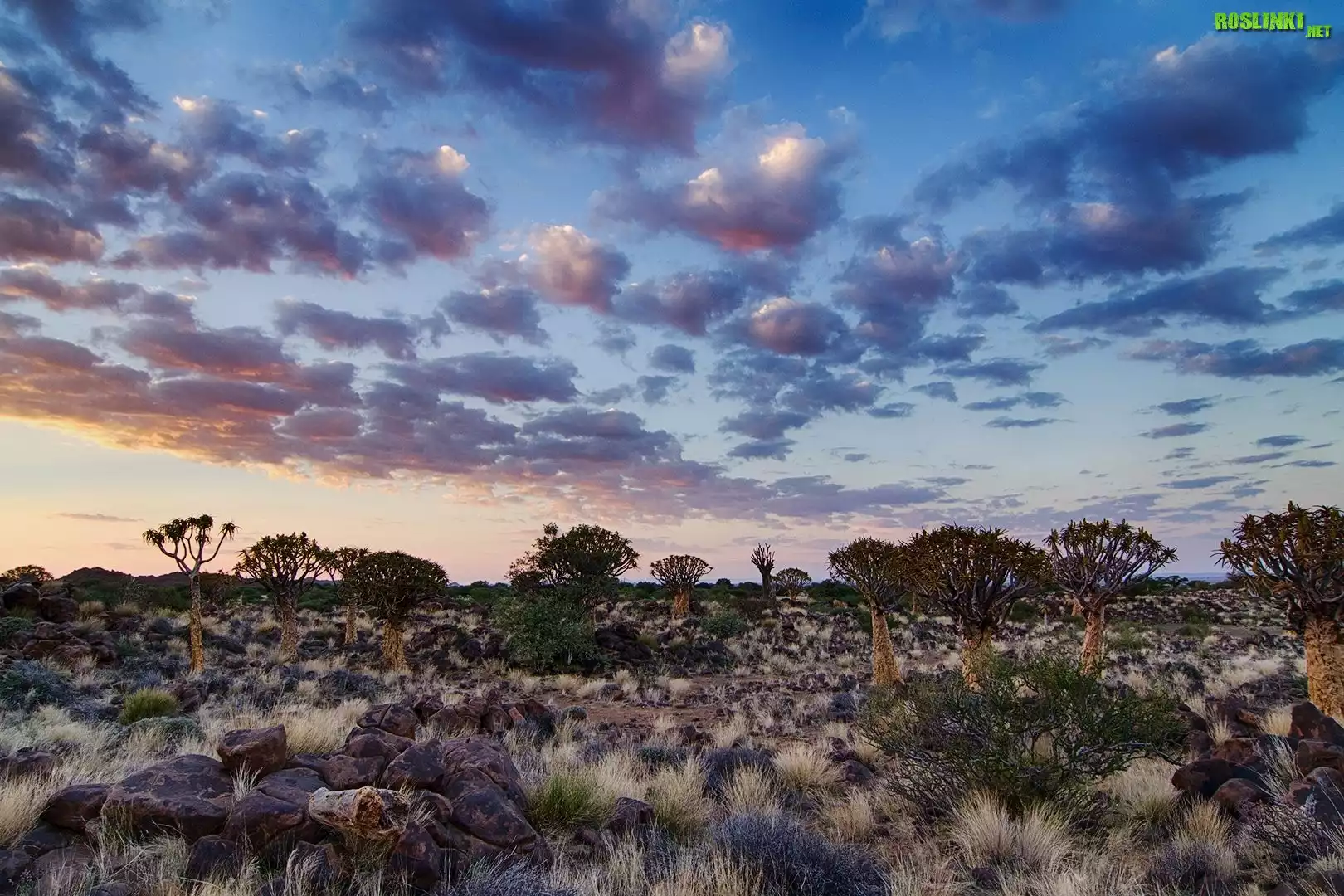 Rośliny: Drzewa, Kamienie, Chmury, Niebo