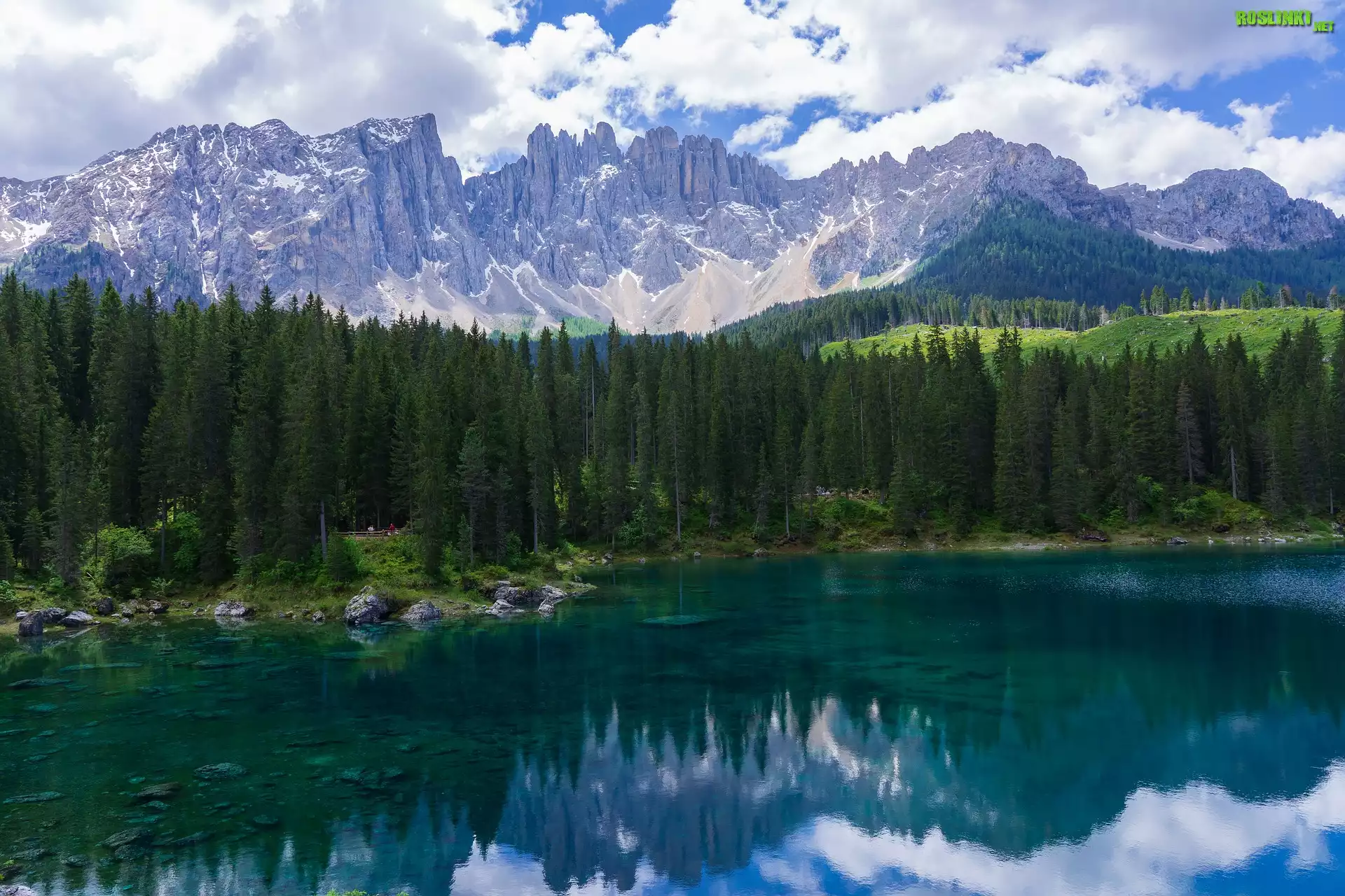 Rośliny: Góry, Dolomity, Las, Drzewa, Jezioro, Chmury