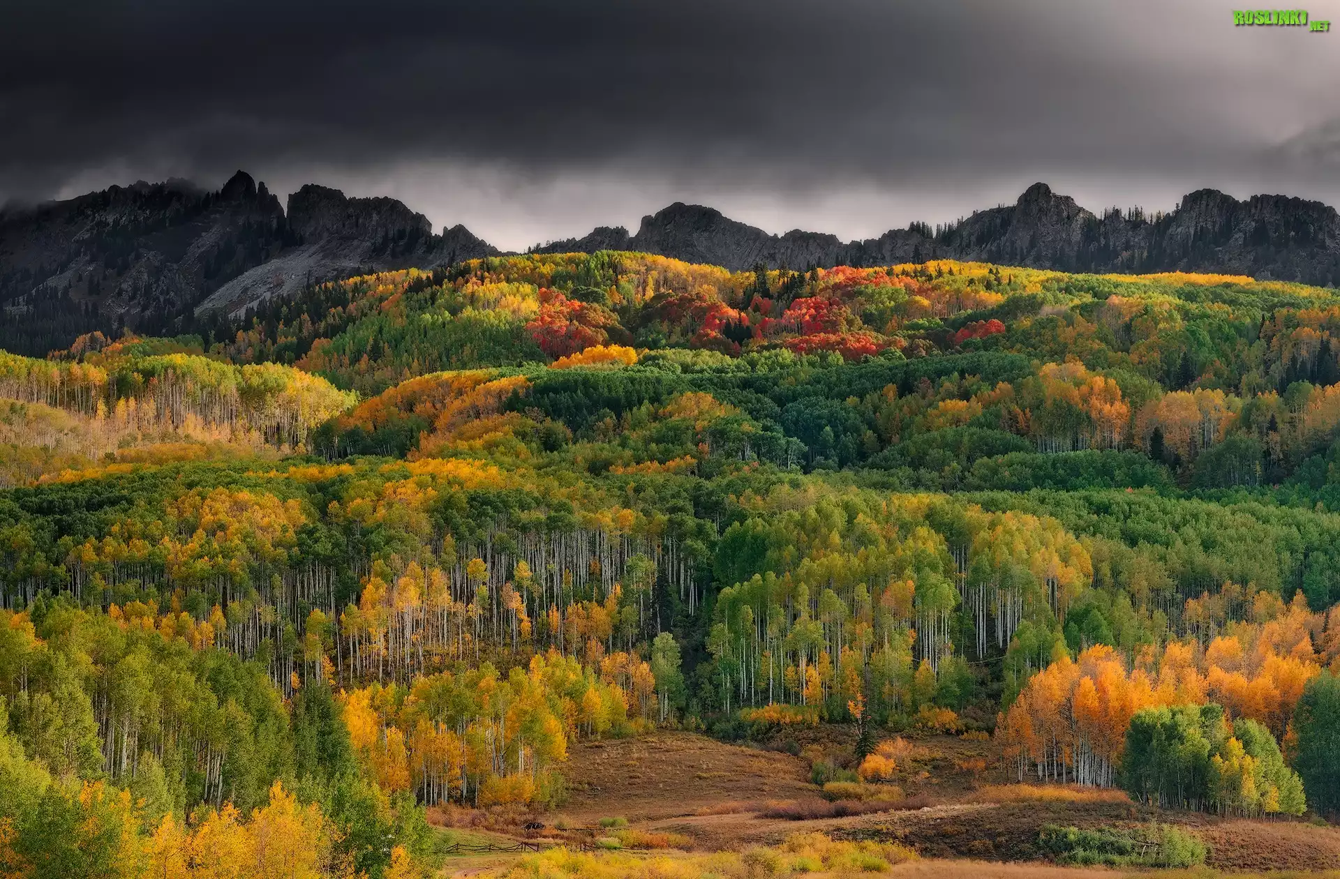 Rośliny: Jesień Góry, Lasy, Drzewa, Wzgórza, Chmury