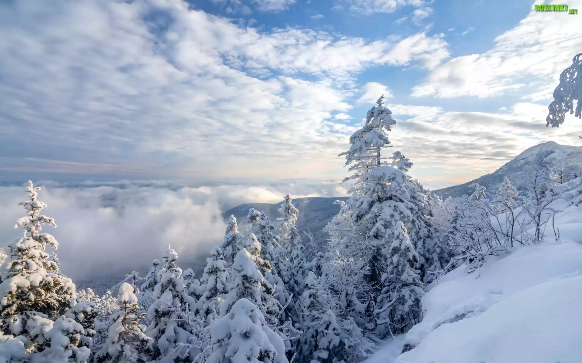 Rośliny: Zima, Góry, Ośnieżone, Drzewa, Las, Chmury