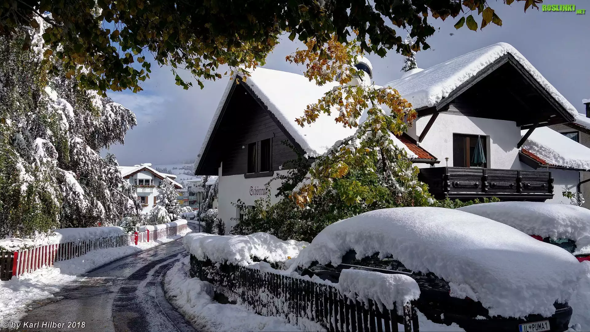 Rośliny: Domy, Śnieg, Zima, Drzewa