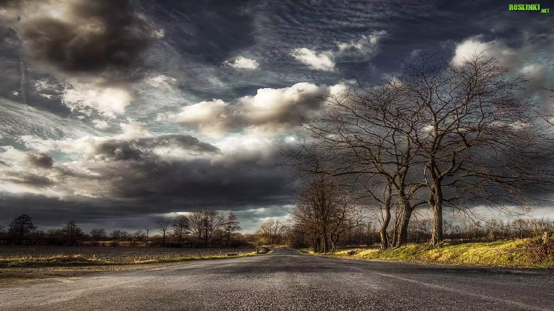 Rośliny: Droga, Drzewa, Chmury