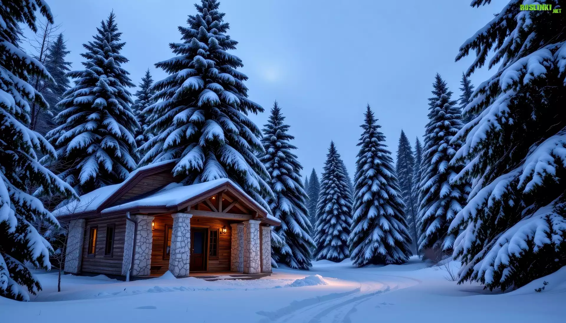 Rośliny: Zima, Dom, Droga, Drzewa, Las, Grafika AI