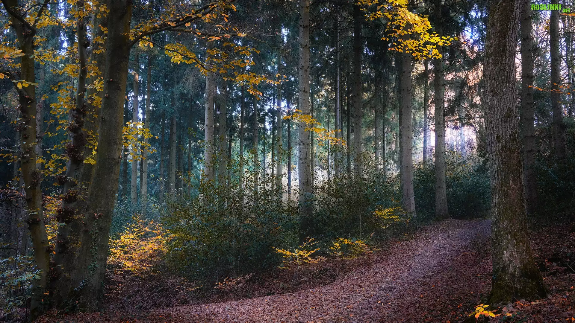 Rośliny: Las, Drzewa, Droga, Pożółkłe, Liście