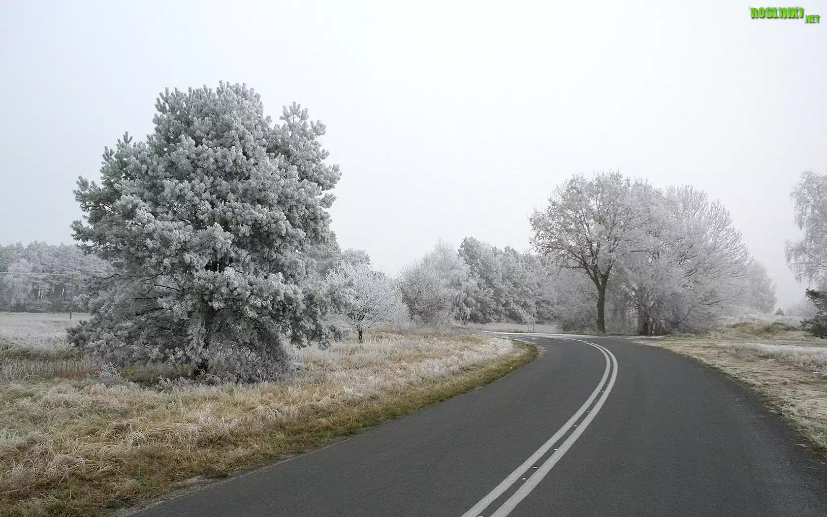 Rośliny: Droga, Drzewa, Zima