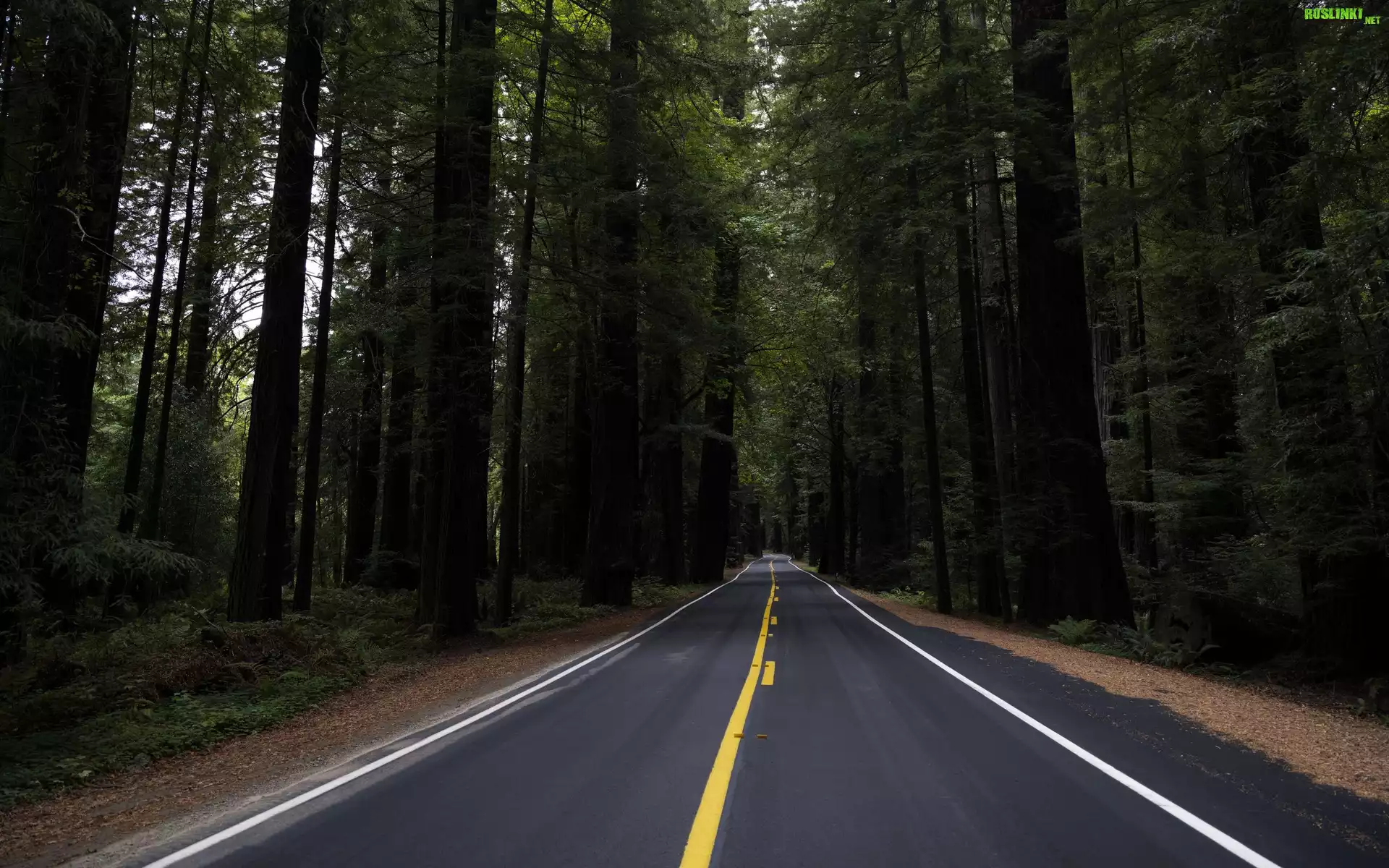 Rośliny: Dwupasmowa, Droga, Las, Drzewa
