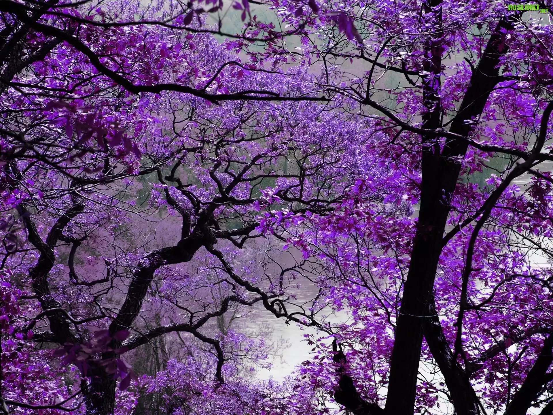 Rośliny: Fioletowe, Drzewa, Jezioro