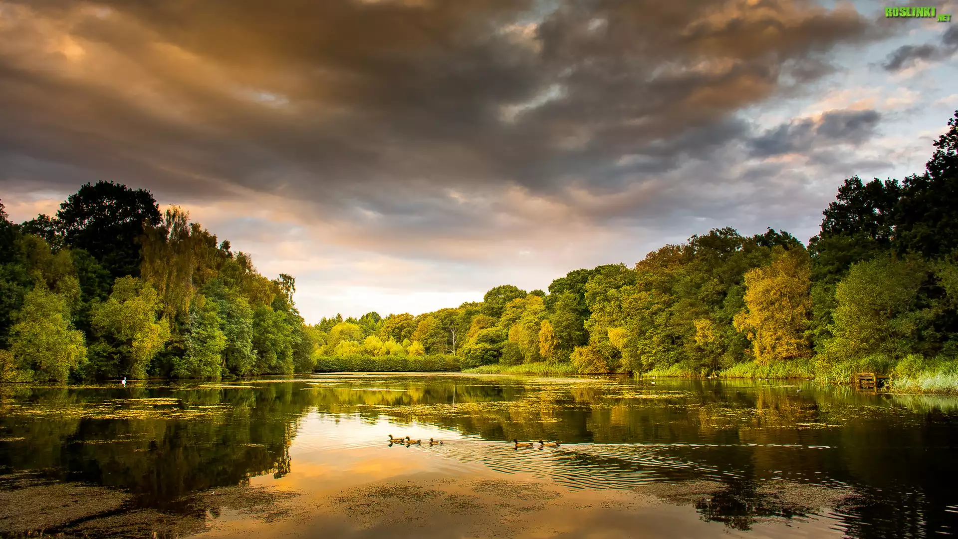 Rośliny: Anglia, Hrabstwo Gloucestershire, Cannop Ponds, Staw Cannop, Kaczki, Drzewa