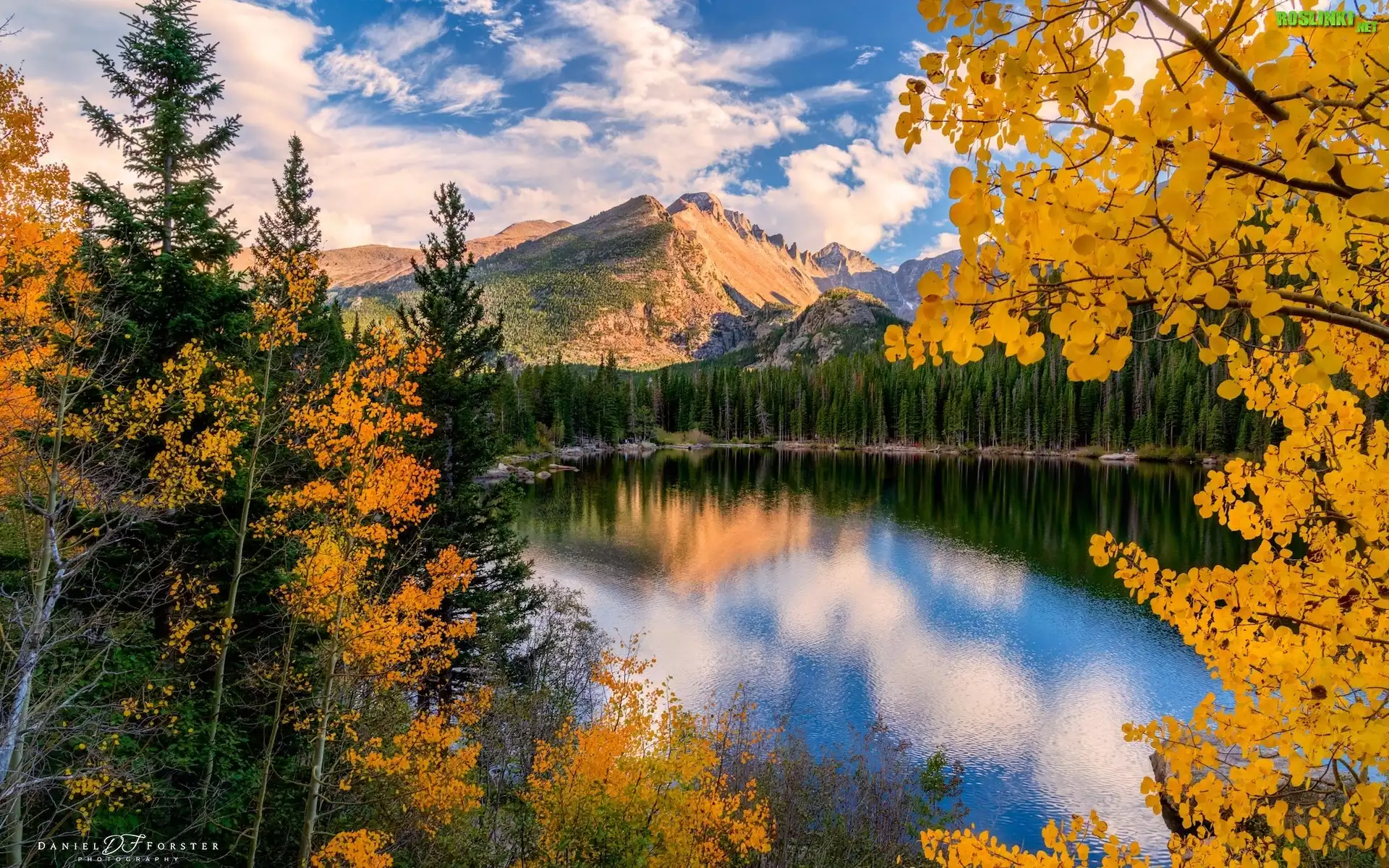 Rośliny: Góry, Jezioro, Jesień, Drzewa