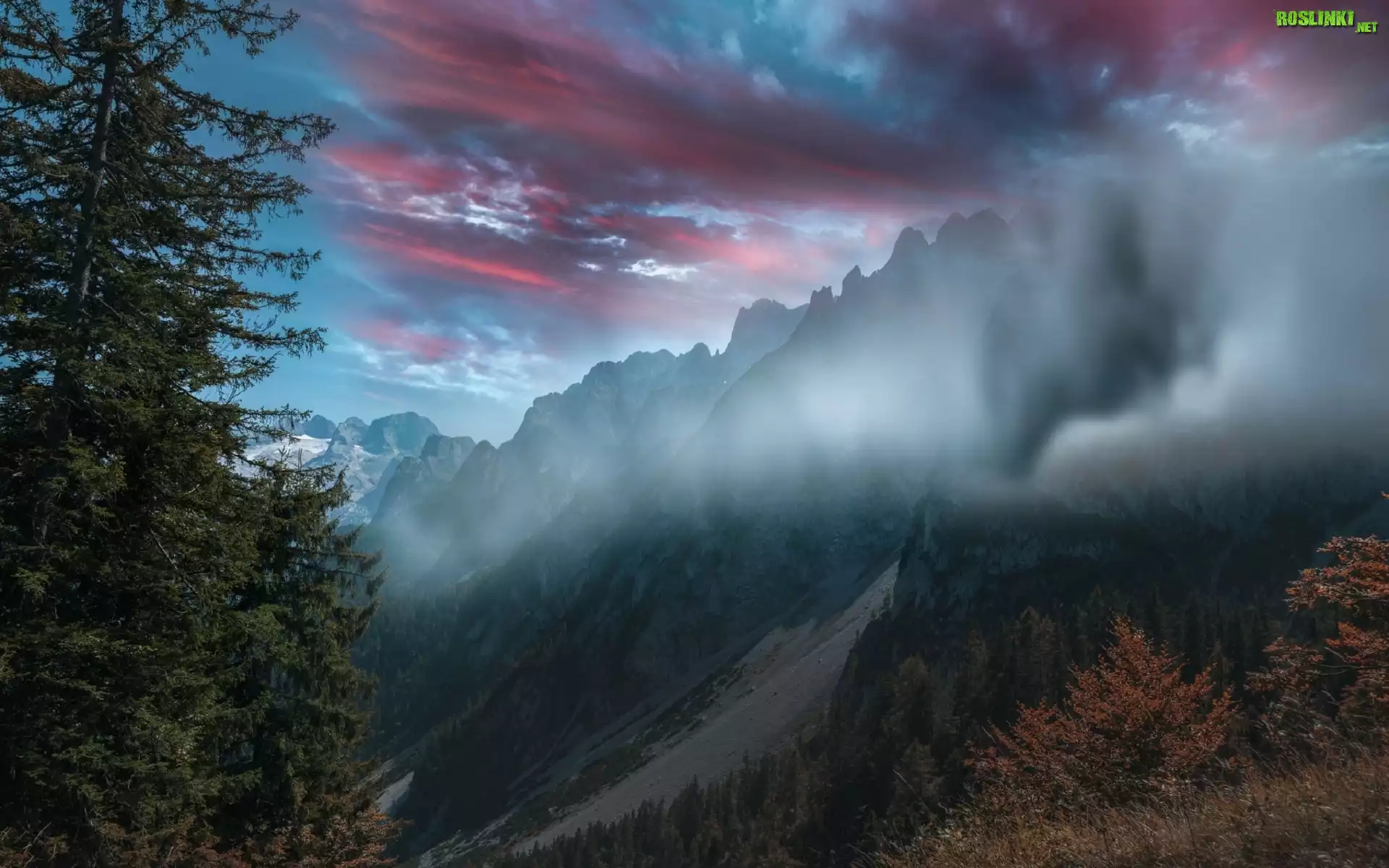Rośliny: Góry, Drzewa, Mgła