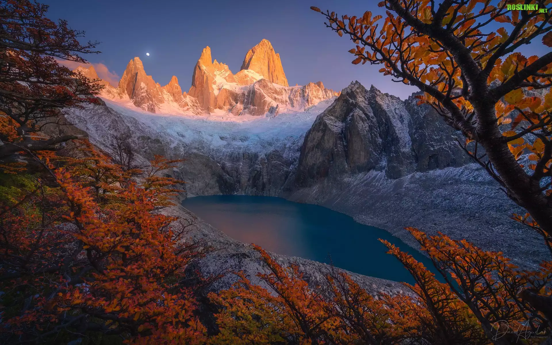 Rośliny: Argentyna, Patagonia, Góry, Szczyt, Fitz Roy, Jezioro, Drzewa