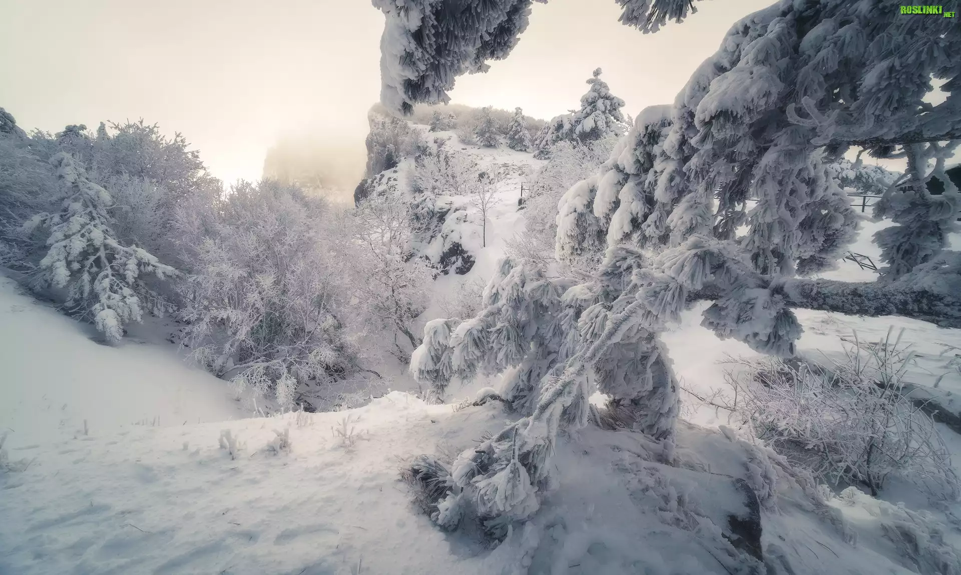 Rośliny: Zima, Zaśnieżone, Drzewa, Gałęzie, Góry Krymskie, Śnieg, Szczyt Aj-Petri, Krym
