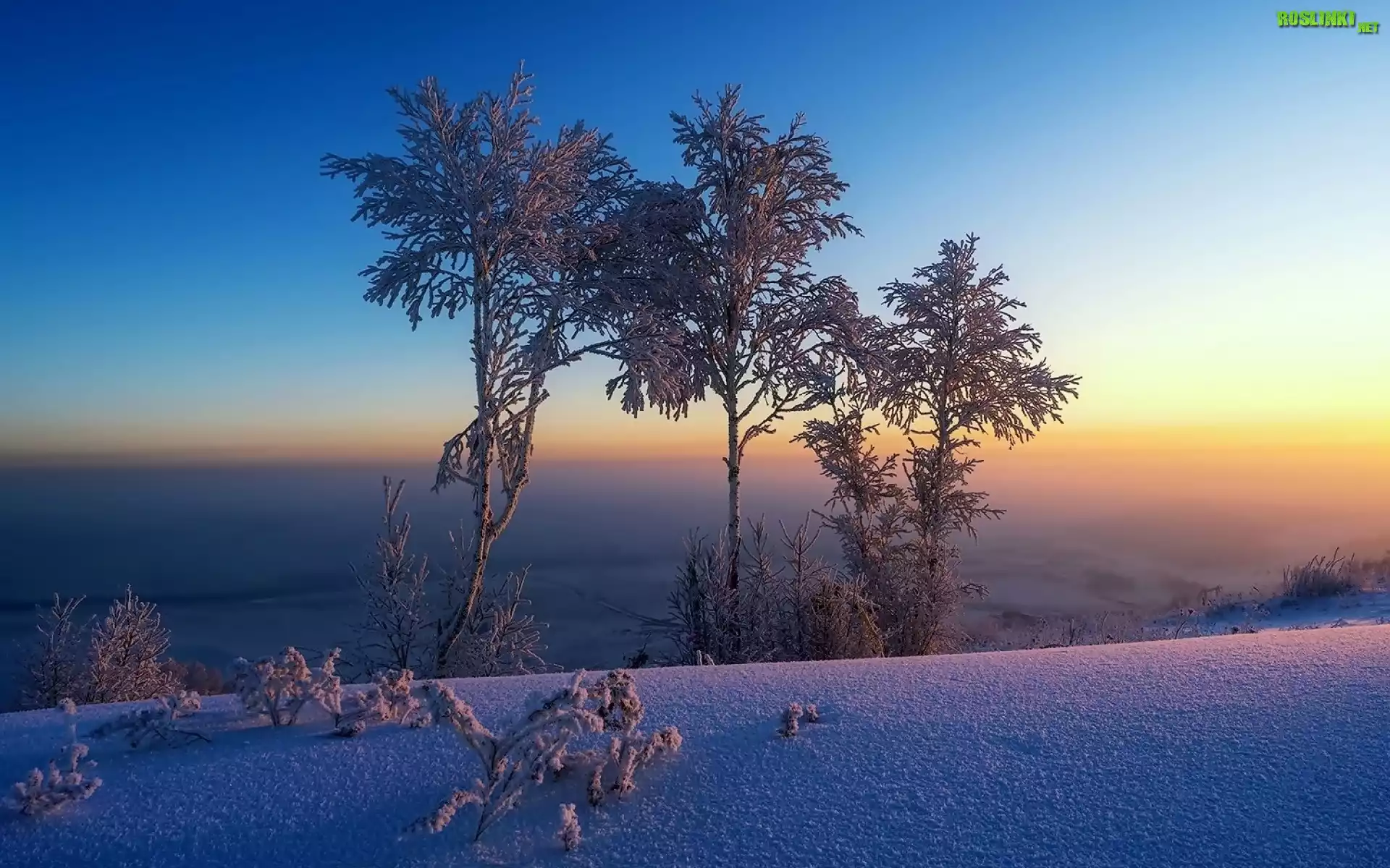 Rośliny: Drzewa, Wschód, Słońca, Horyzont, Zima