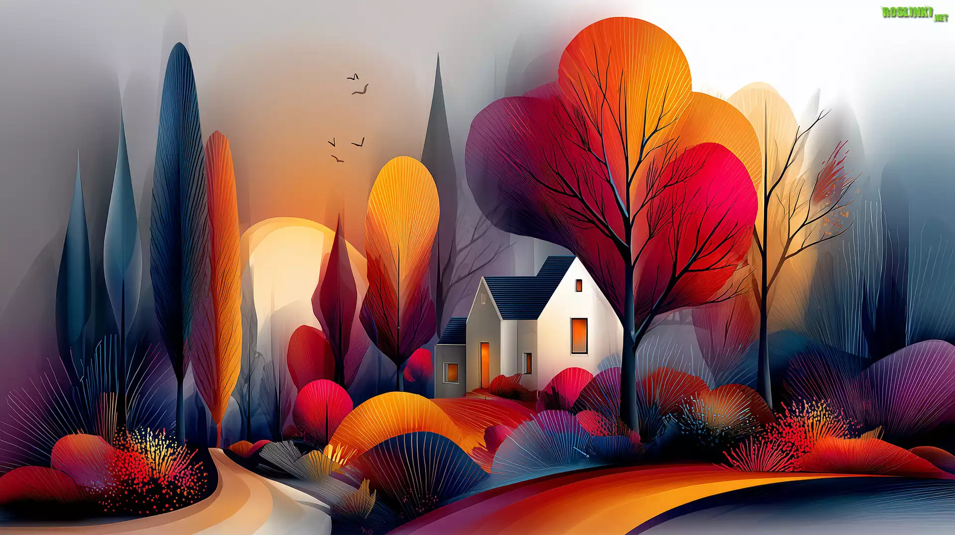 Rośliny: Dom, Drzewa, Jesień, Grafika AI