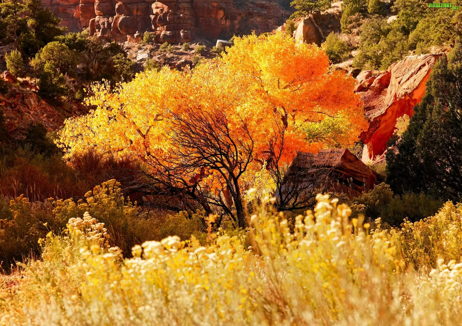 Rośliny: Jesień, Drzewa, Skały