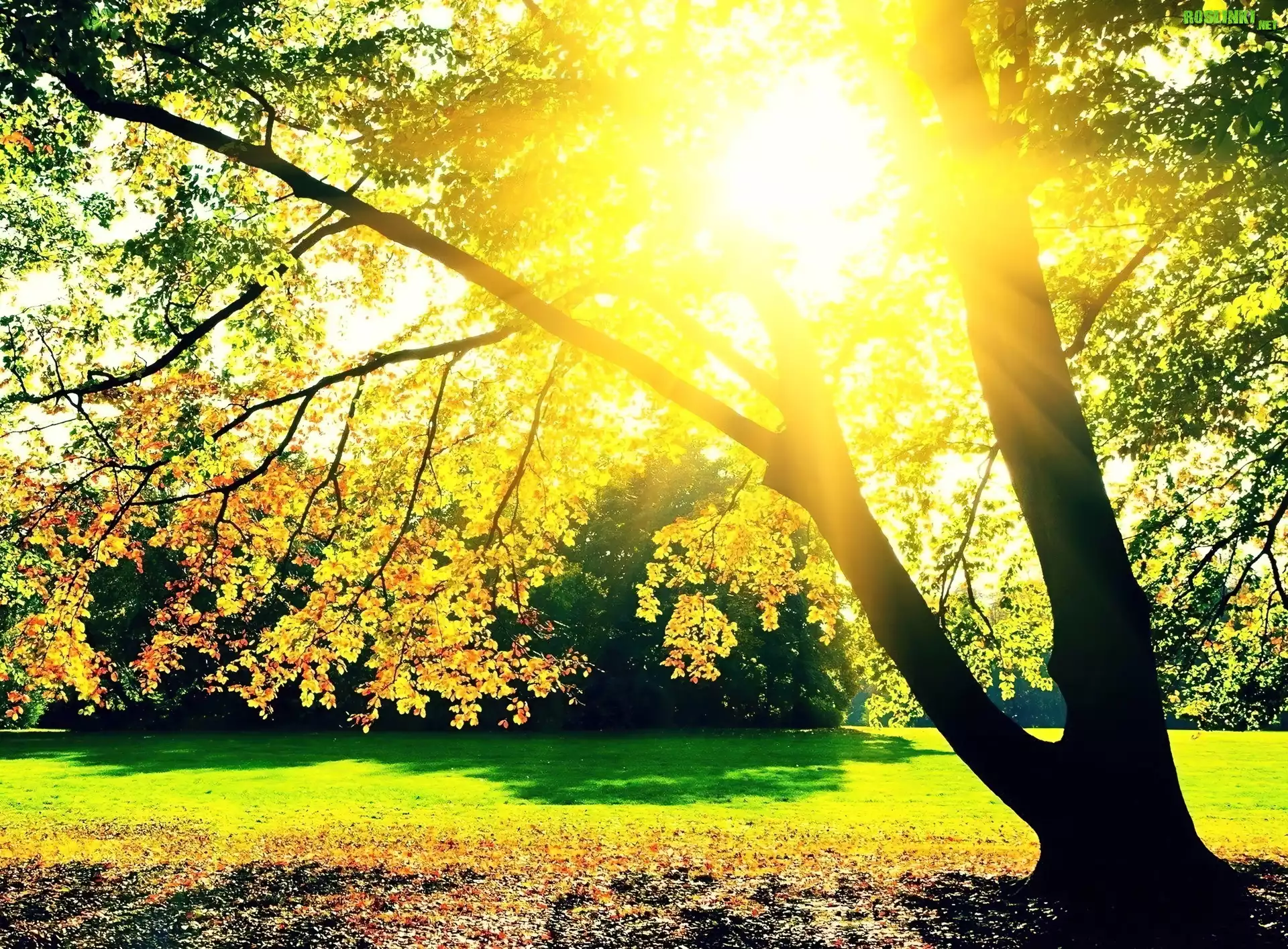 Rośliny: Jesień, Drzewa, Słońce
