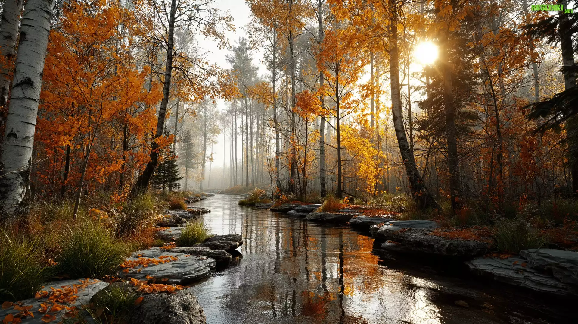 Rośliny: Jesień, Las, Strumień, Drzewa