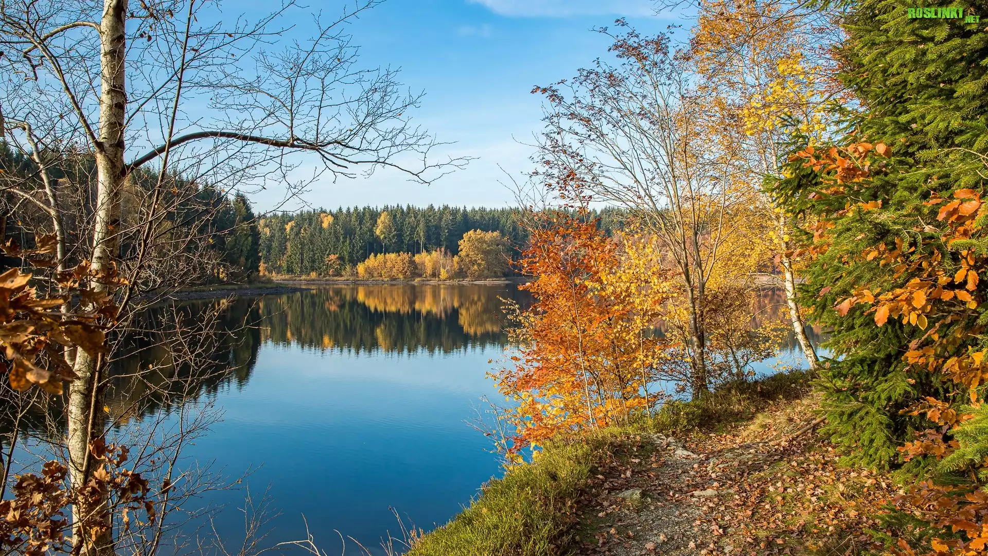 Rośliny: Jesień, Jezioro, Żółte, Drzewa