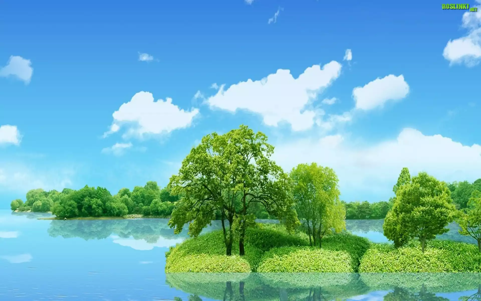 Rośliny: Jezioro, Drzewa, Chmurki