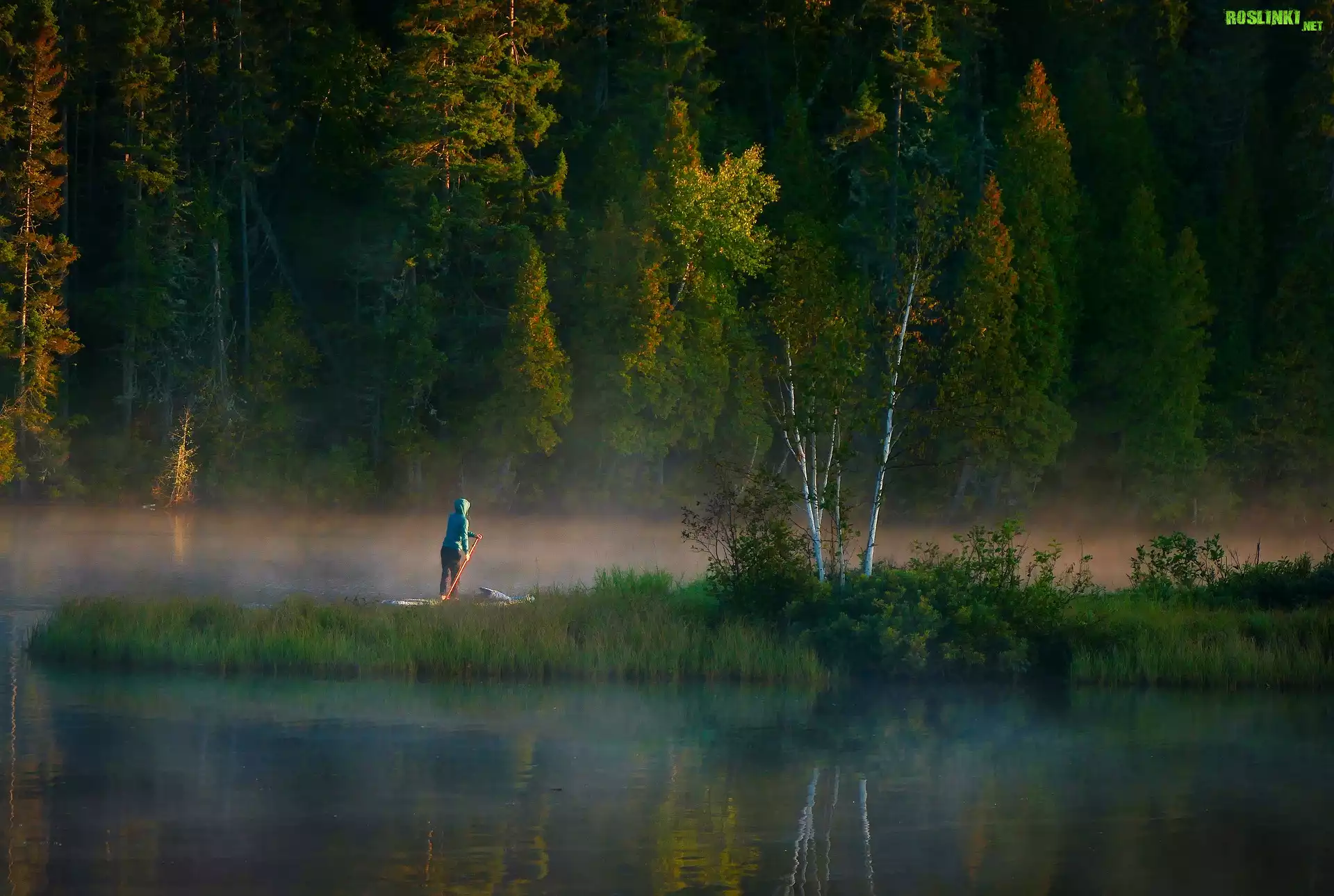 Rośliny: Jezioro, Mgła, Las, Drzewa
