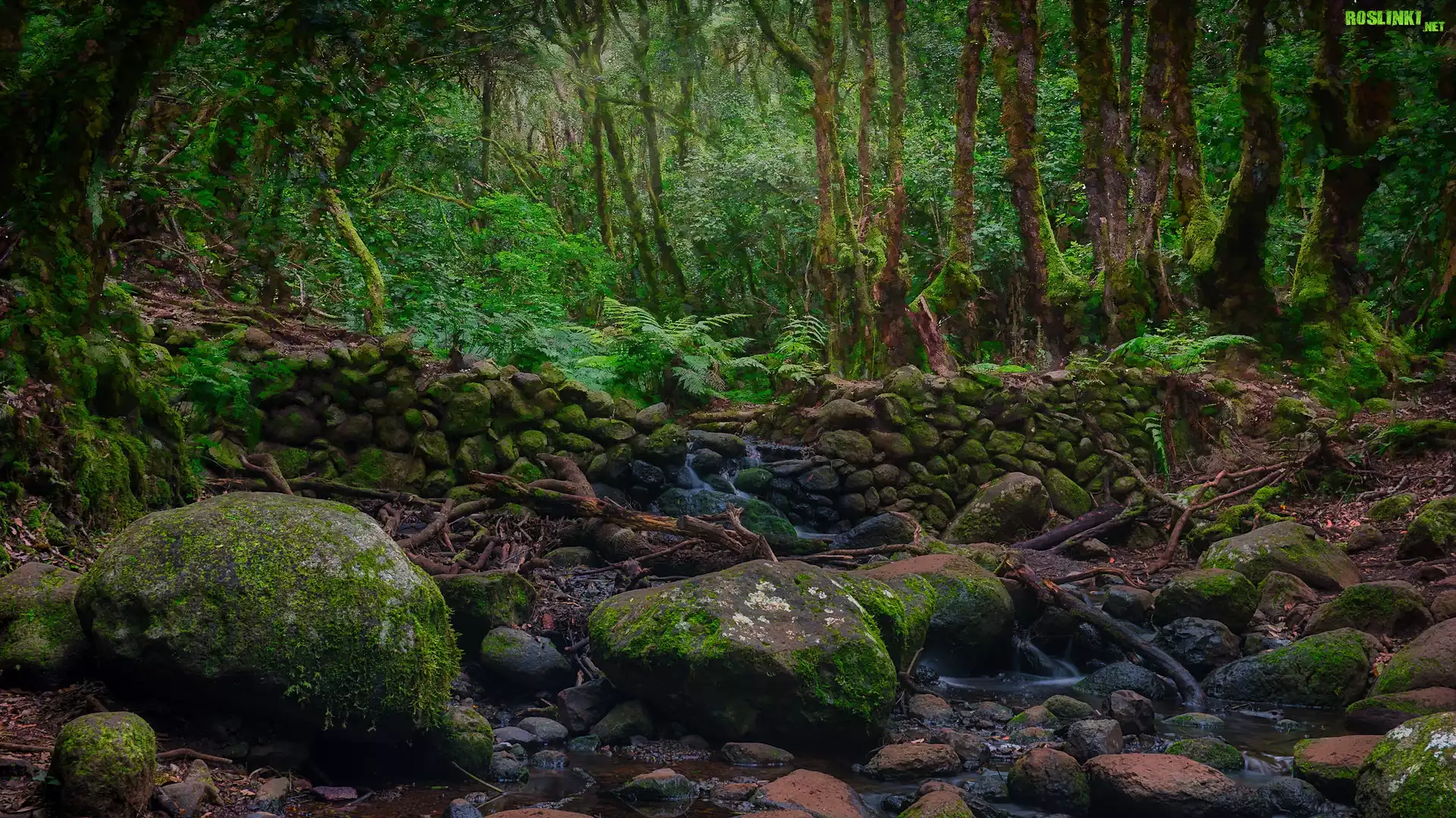Rośliny: Las wawrzynolistny, Drzewa, Paprocie, Kamienie, Omszałe, La Gomera, Wyspy Kanaryjskie, Hiszpania