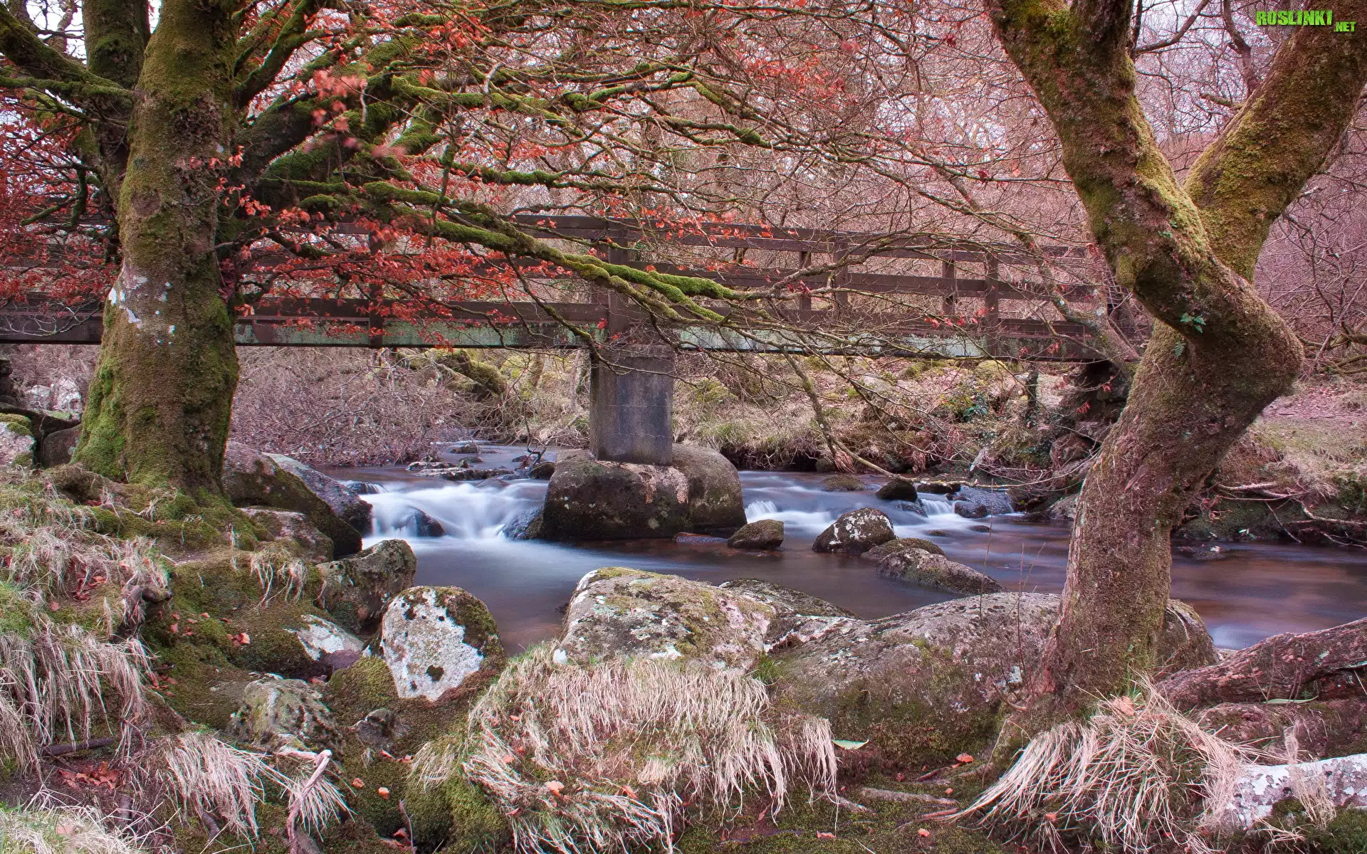 Rośliny: Most, Rzeka, Kamienie, Drzewa, Omszone, Konary, Kamienie