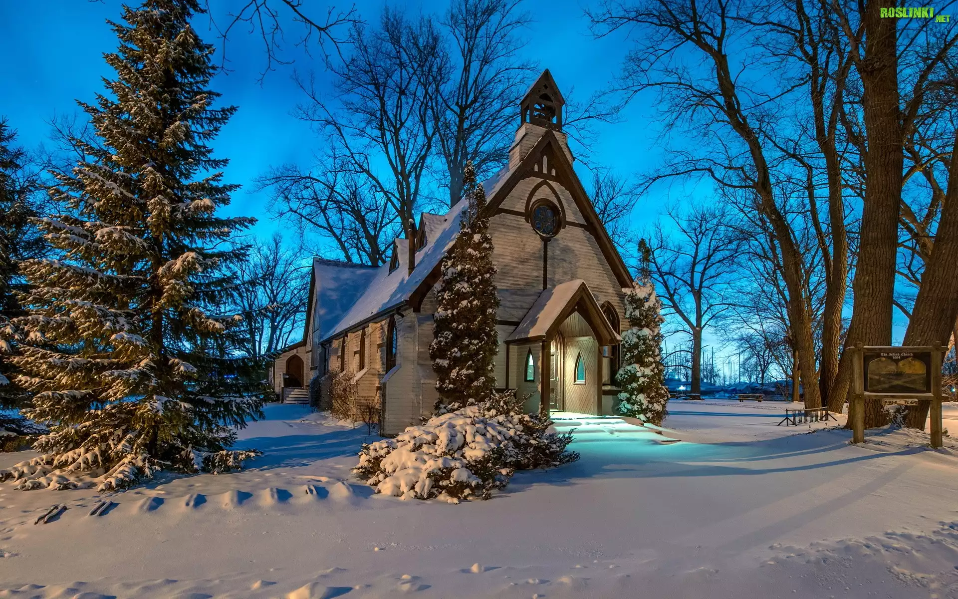 Rośliny: Kościółek, Drzewa, Zima