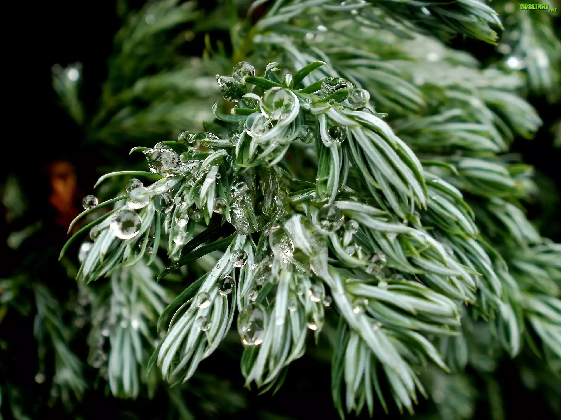 Rośliny: Drzewa, Iglaki, Krople, Wody